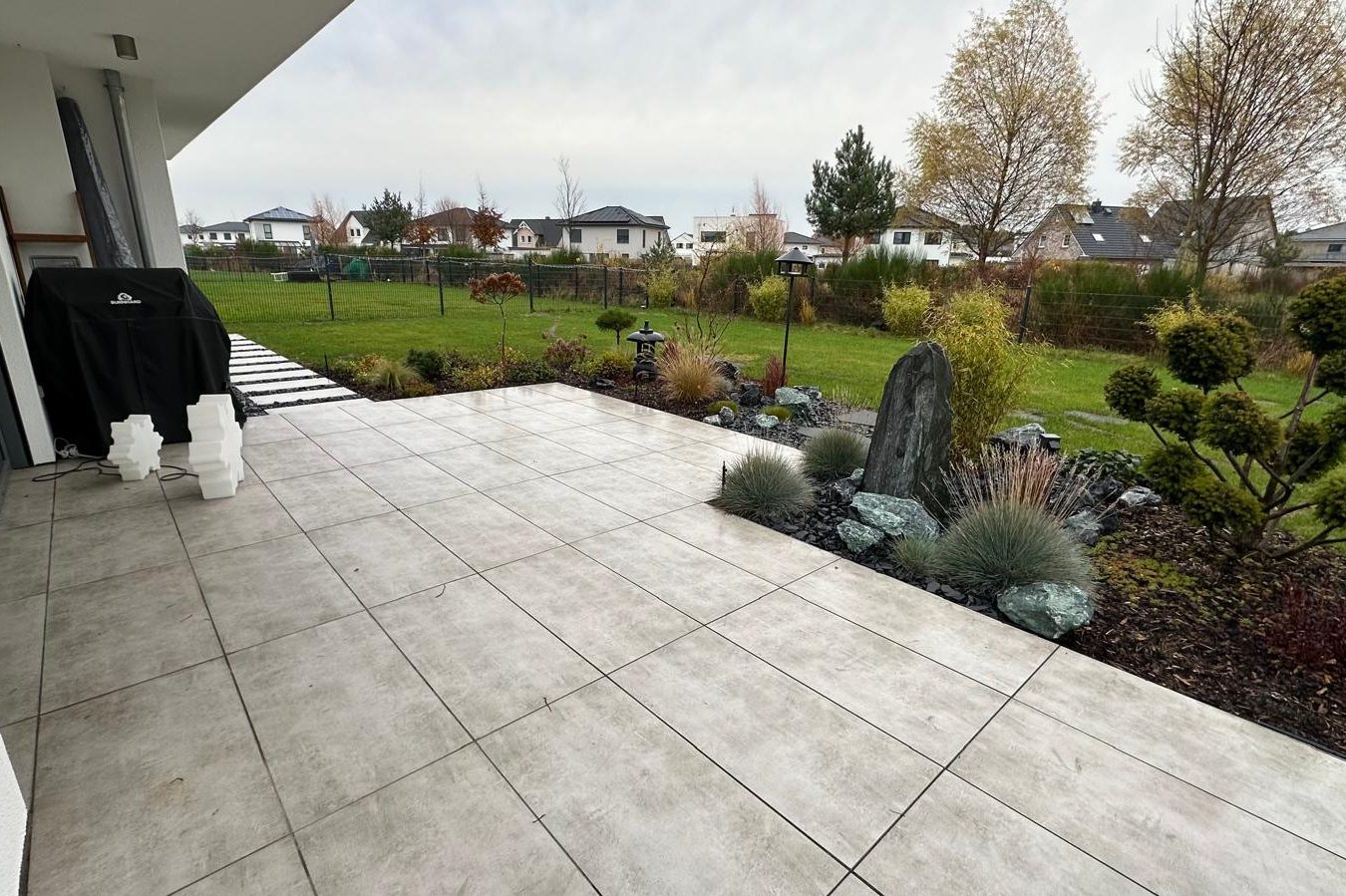 Terrassen aus Betonplatten und Naturstein